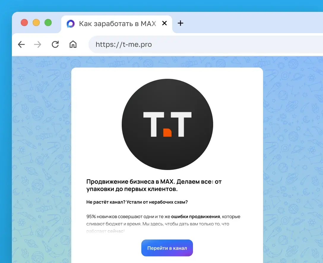 Лендинг: Cайт с моментальной переадресацией в MAX, повышающий конверсию в подписку.